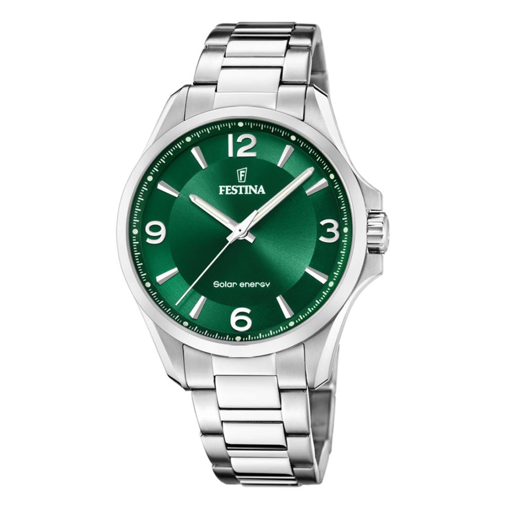 Il quadrante verde e il materiale in acciaio inossidabile conferiscono a questo orologio un aspetto moderno e alla moda. Il vetro minerale garantisce una protezione affidabile, mentre il colore argentato della cassa aggiunge un tocco di classe. Inoltre, con una resistenza all'acqua di 5 ATM, puoi indossare questo orologio senza preoccupazioni anche sotto la pioggia o durante il lavaggio delle mani.
